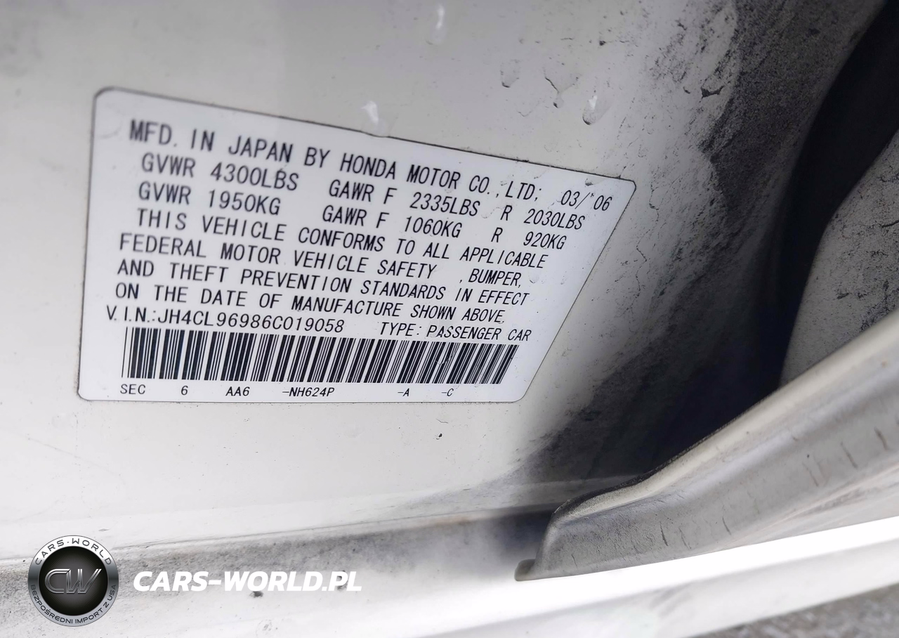 IAAI Nr: I-44737249 VIN: JH4CL96986C019058 Port: Los Angeles, CA