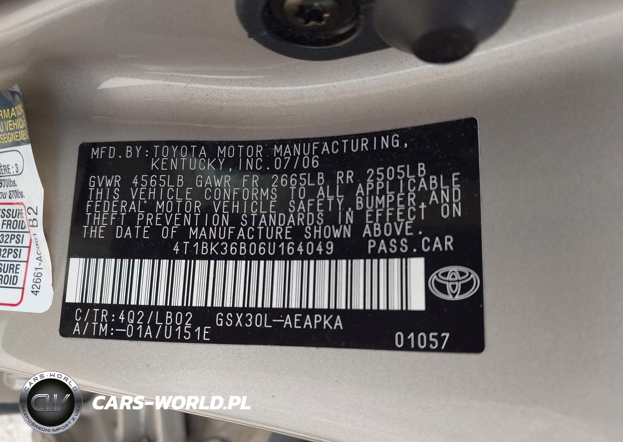 IAAI Nr: I-44737534 VIN: 4T1BK36B06U164049 Port: Savannah, GA