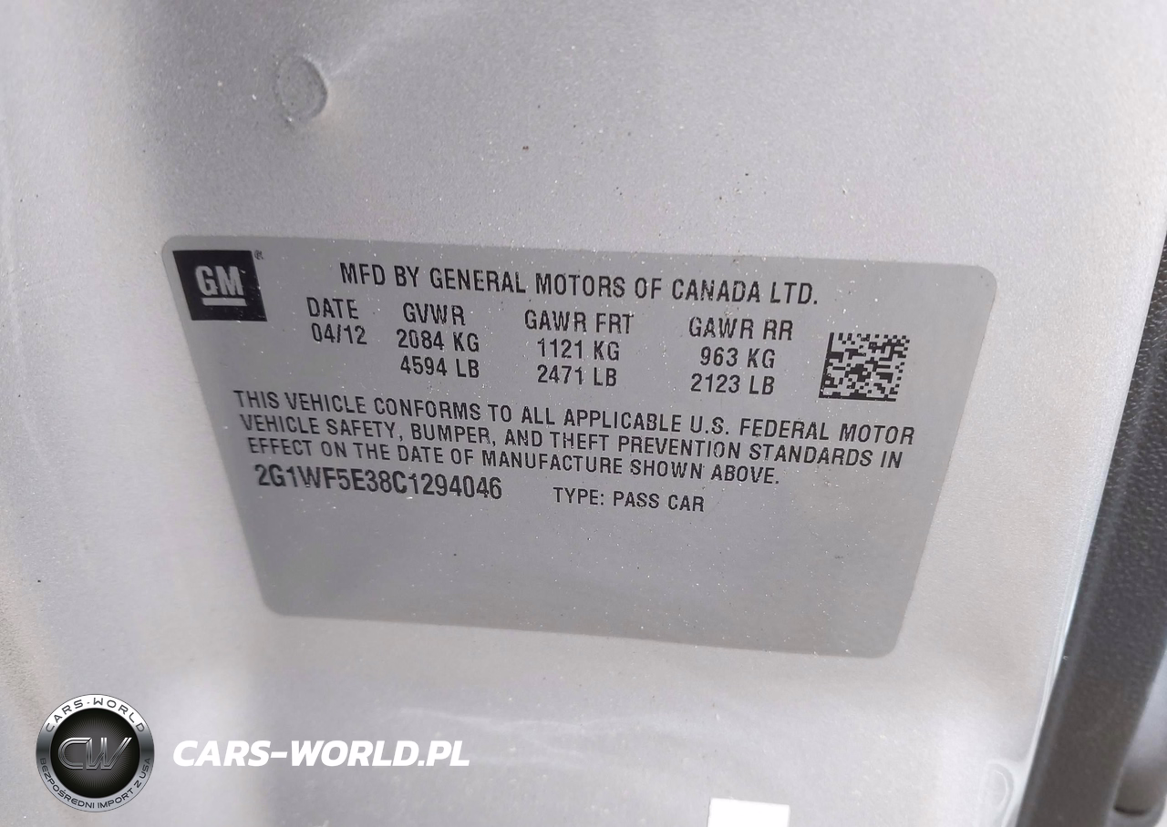 IAAI Nr: I-44737795 VIN: 2G1WF5E38C1294046 Port: Elizabeth, NJ