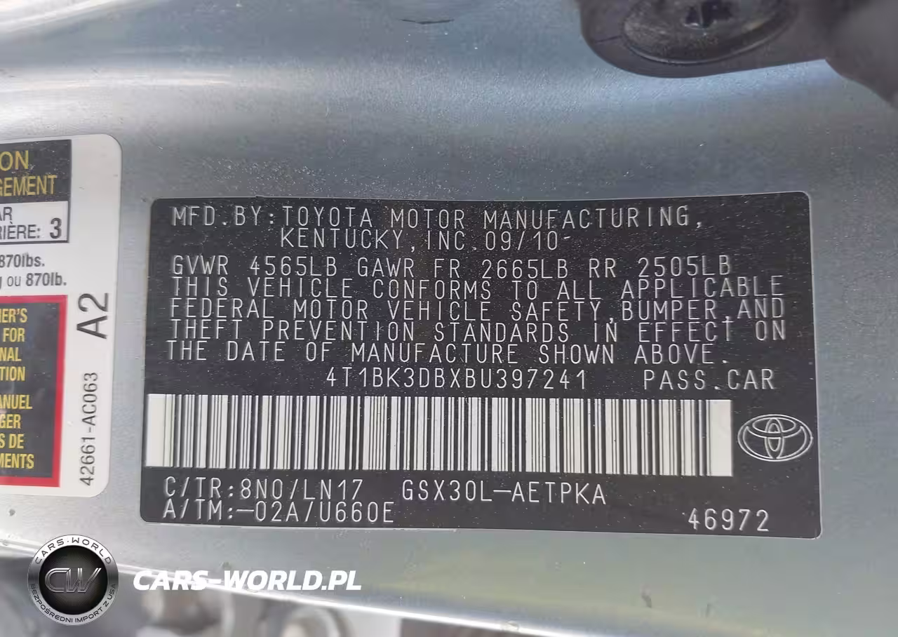 IAAI Nr: I-44738038 VIN: 4T1BK3DBXBU397241 Port: Houston, TX