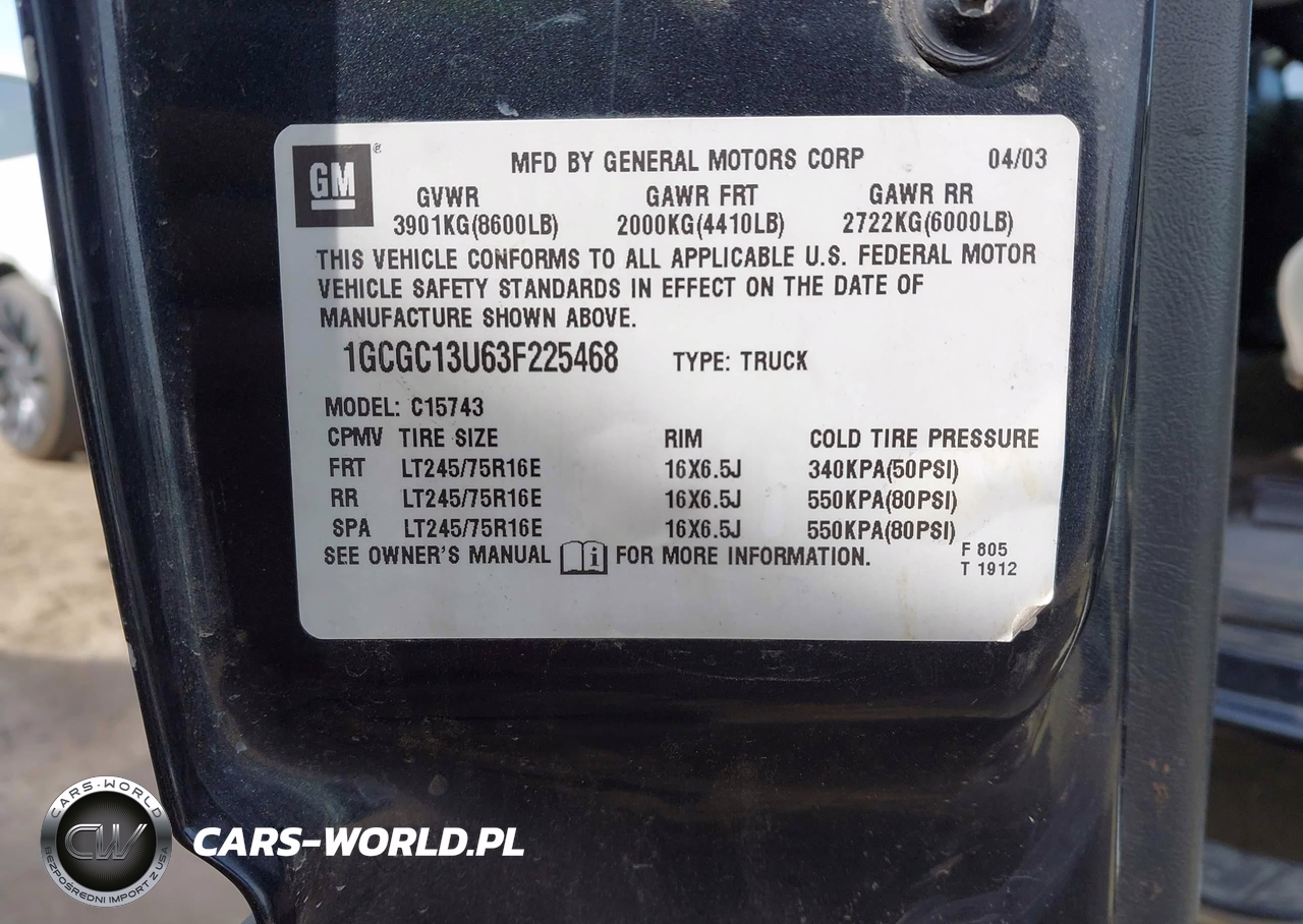 IAAI Nr: I-44739209 VIN: 1GCGC13U63F225468 Port: Los Angeles, CA