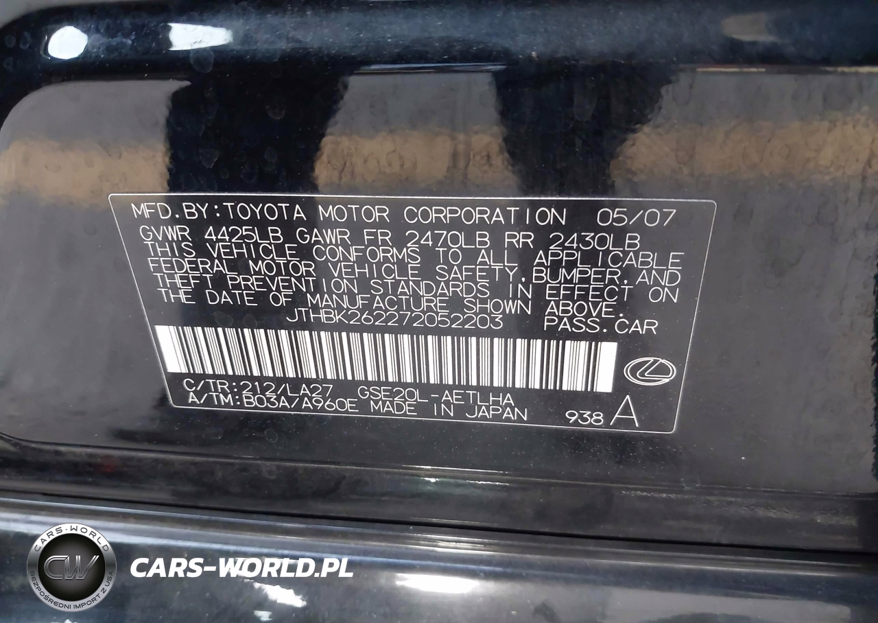 IAAI Nr: I-44739541 VIN: JTHBK262272052203 Port: Los Angeles, CA