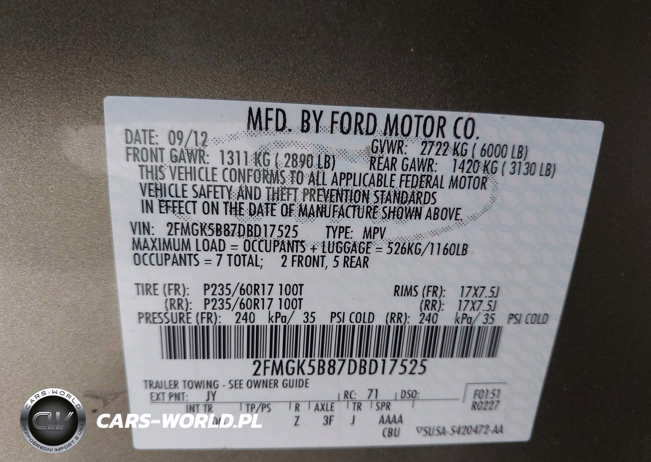 IAAI Nr: I-44740765 VIN: 2FMGK5B87DBD17525 Port: Los Angeles, CA