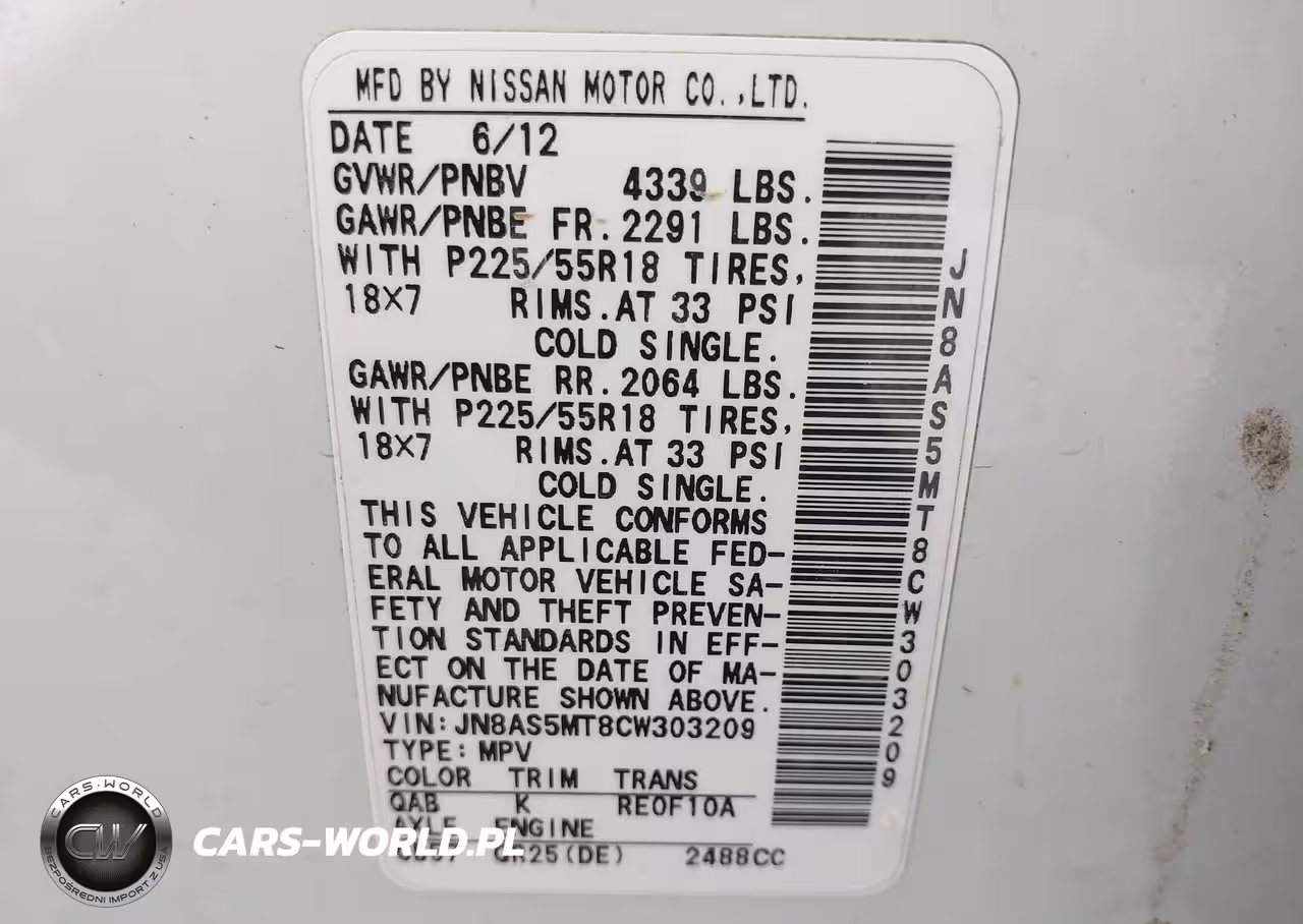 IAAI Nr: I-44740852 VIN: JN8AS5MT8CW303209 Port: Los Angeles, CA