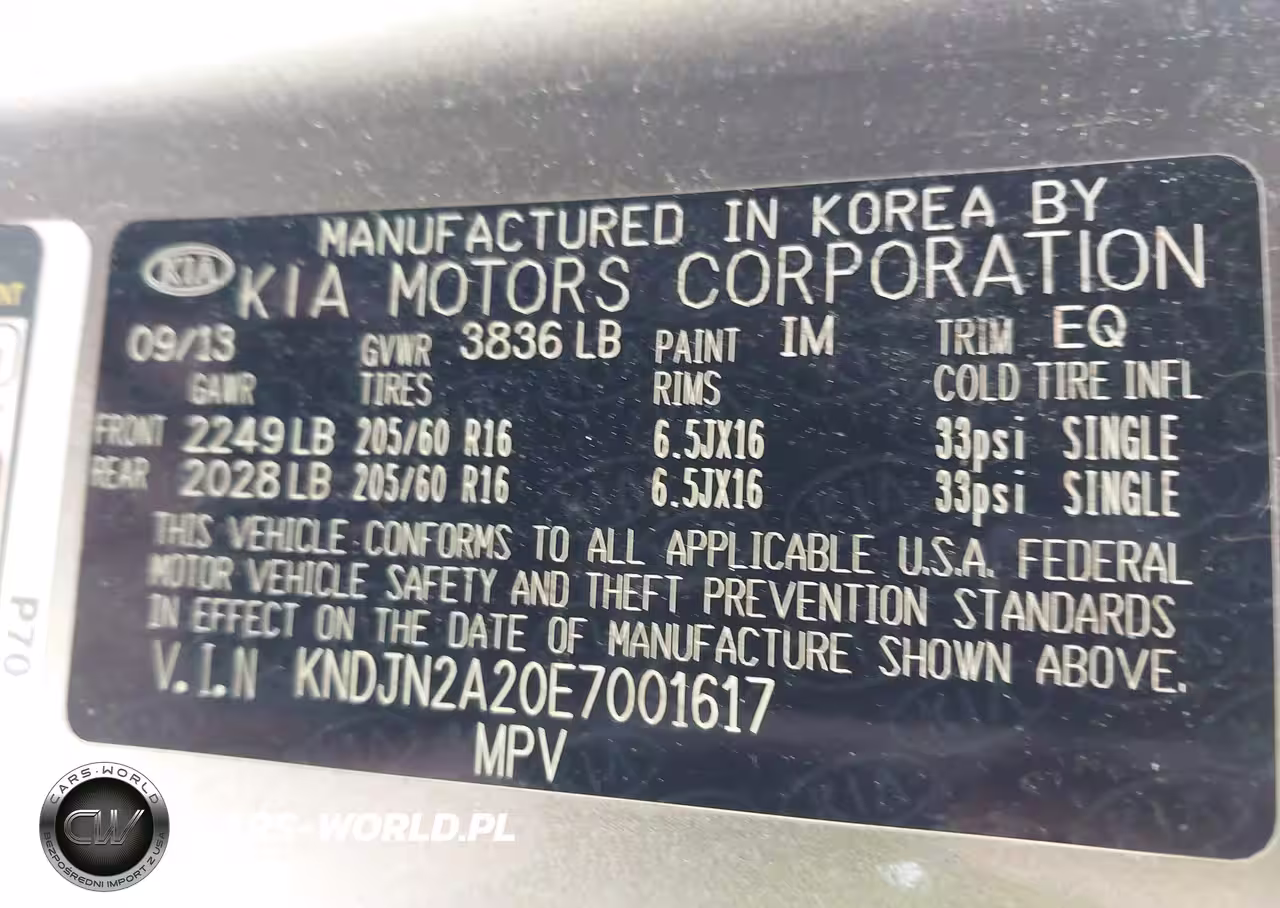 IAAI Nr: I-44740895 VIN: KNDJN2A20E7001617 Port: Elizabeth, NJ