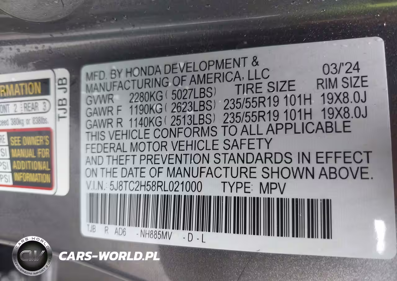 IAAI Nr: I-44741381 VIN: 5J8TC2H58RL021000 Port: Elizabeth, NJ