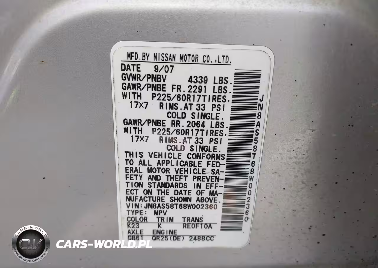 IAAI Nr: I-44741651 VIN: JN8AS58T68W002360 Port: Houston, TX