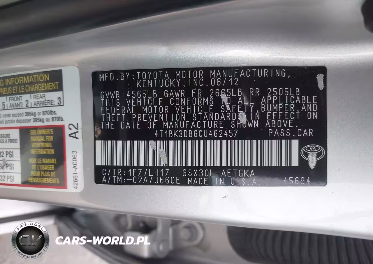 IAAI Nr: I-44741748 VIN: 4T1BK3DB6CU462457 Port: Los Angeles, CA