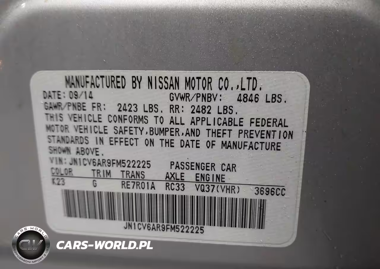 IAAI Nr: I-44741896 VIN: JN1CV6AR9FM522225 Port: Elizabeth, NJ