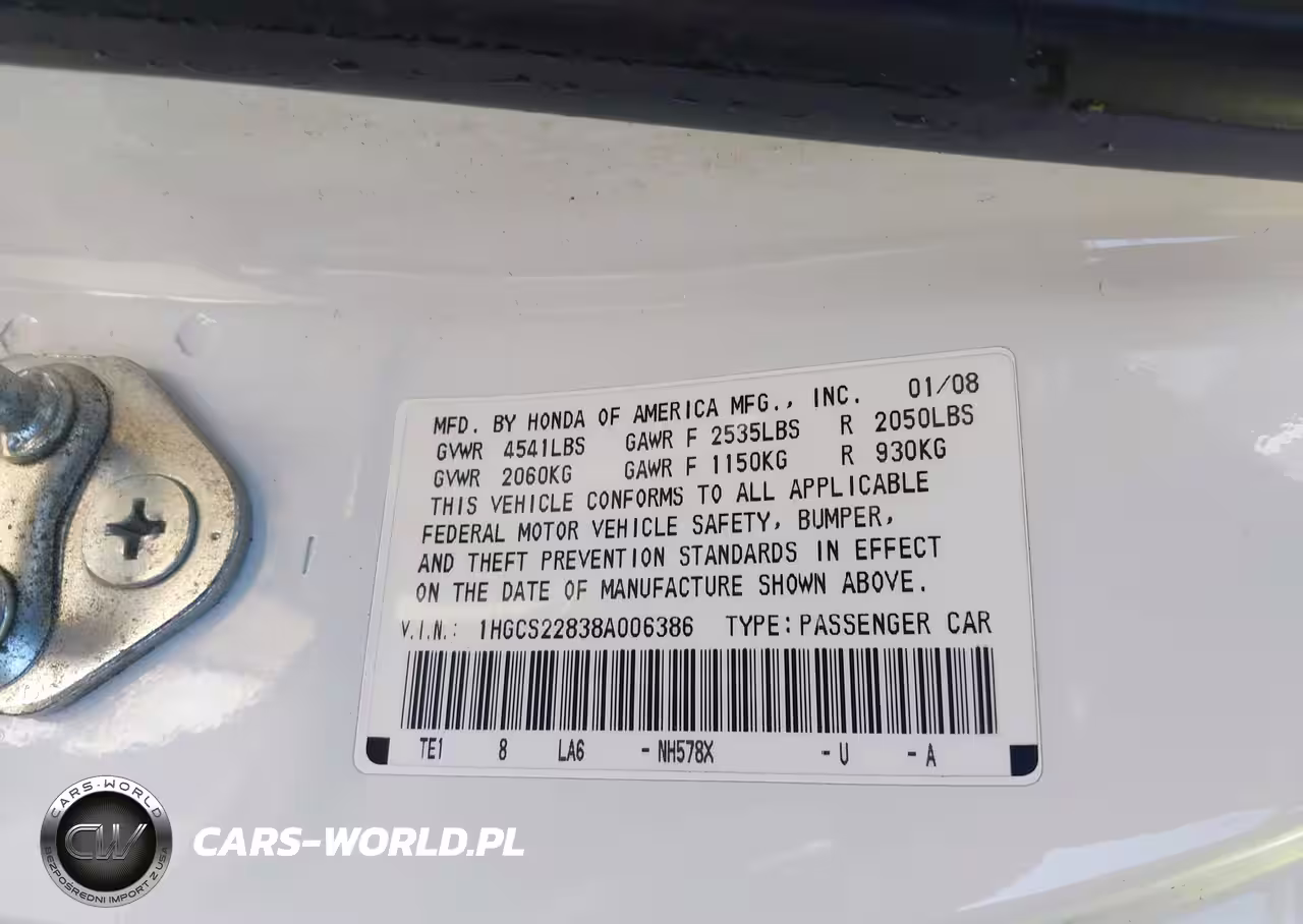 IAAI Nr: I-44742867 VIN: 1HGCS22838A006386 Port: Los Angeles, CA