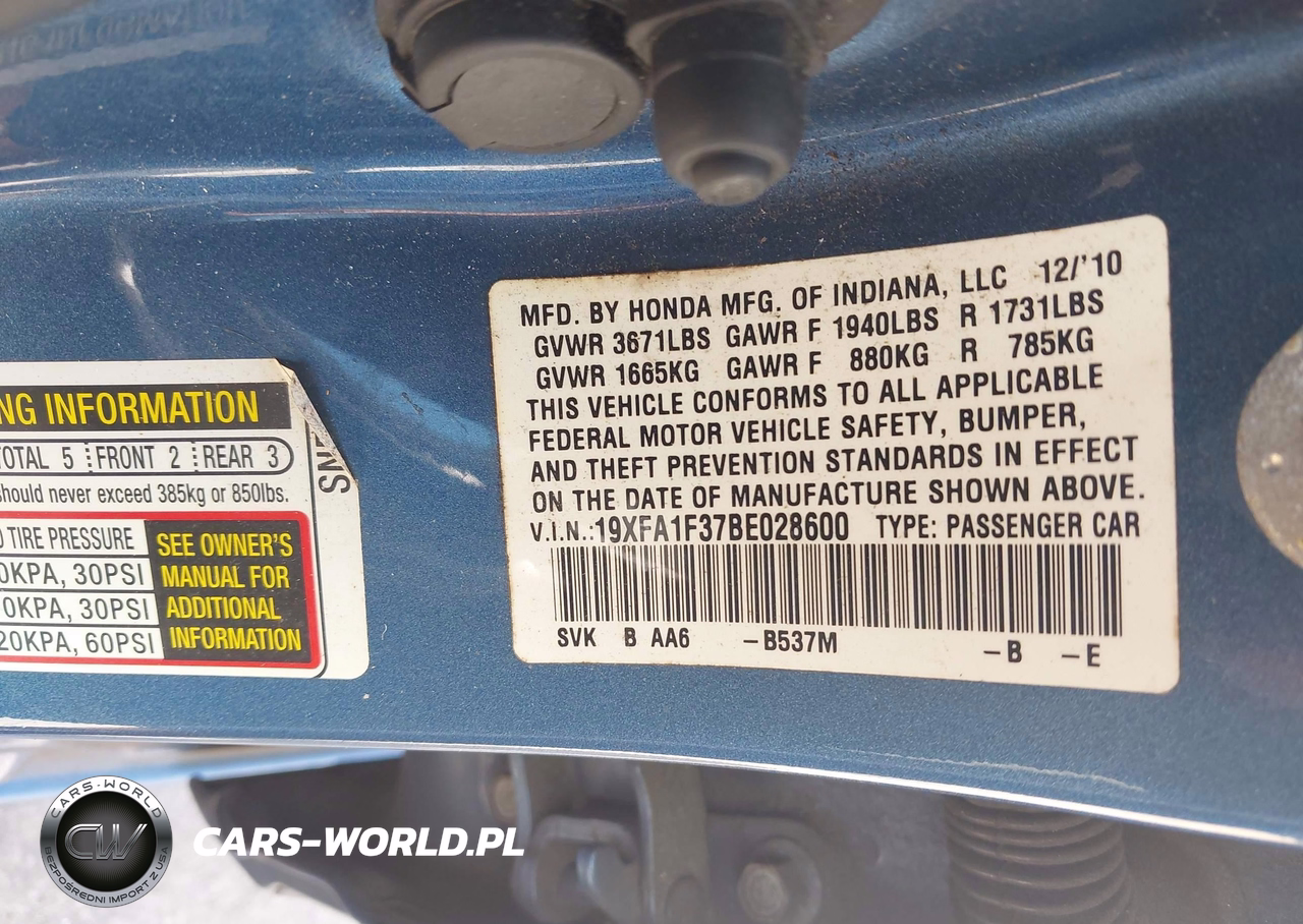 IAAI Nr: I-44742907 VIN: 19XFA1F37BE028600 Port: Savannah, GA
