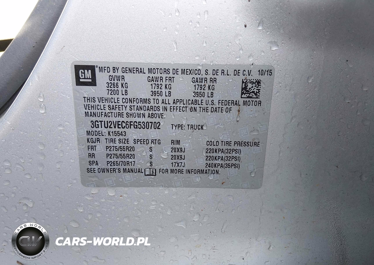 IAAI Nr: I-44743672 VIN: 3GTU2VEC6FG530702 Port: Savannah, GA