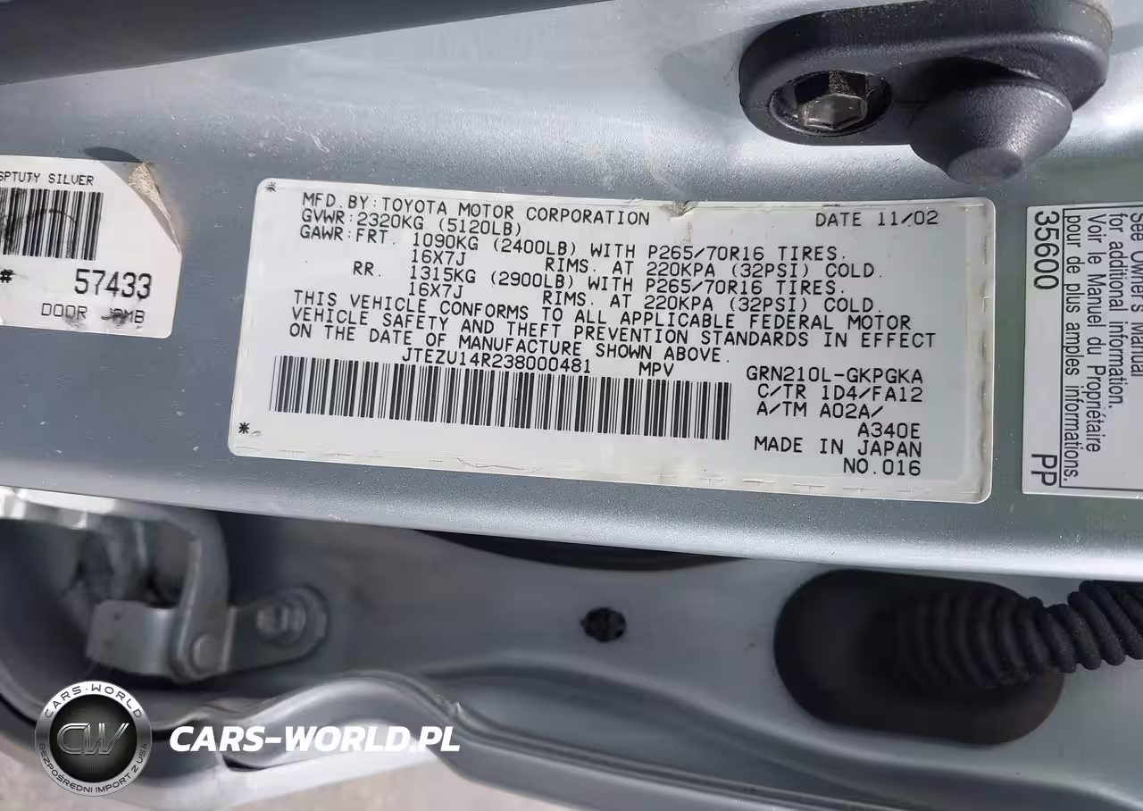 IAAI Nr: I-44744188 VIN: JTEZU14R238000481 Port: Los Angeles, CA