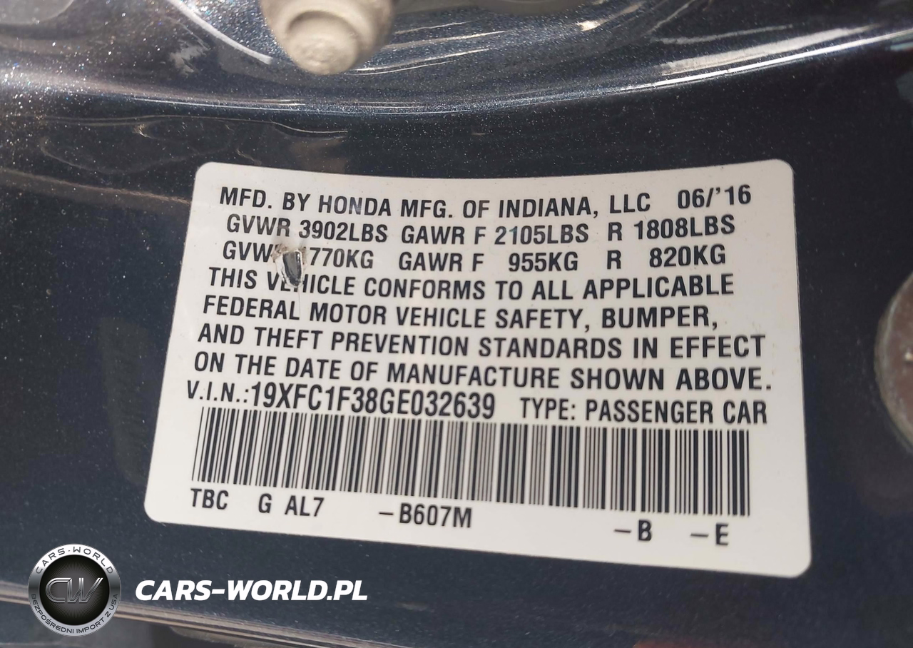 IAAI Nr: I-44744264 VIN: 19XFC1F38GE032639 Port: Houston, TX