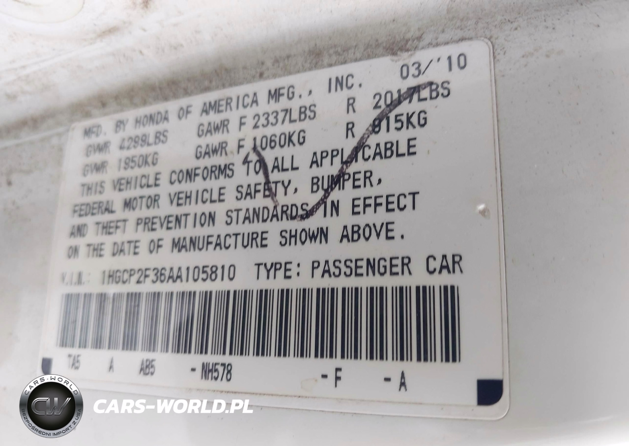 IAAI Nr: I-44744570 VIN: 1HGCP2F36AA105810 Port: Houston, TX