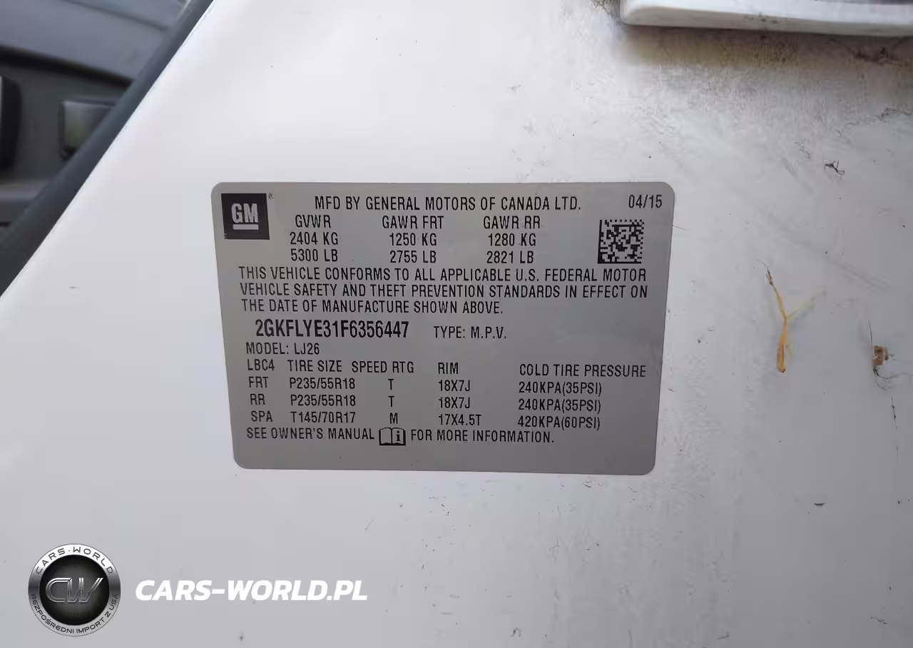 IAAI Nr: I-44744941 VIN: 2GKFLYE31F6356447 Port: Savannah, GA
