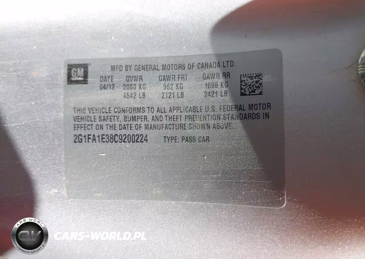 IAAI Nr: I-44745064 VIN: 2G1FA1E38C9200224 Port: Los Angeles, CA