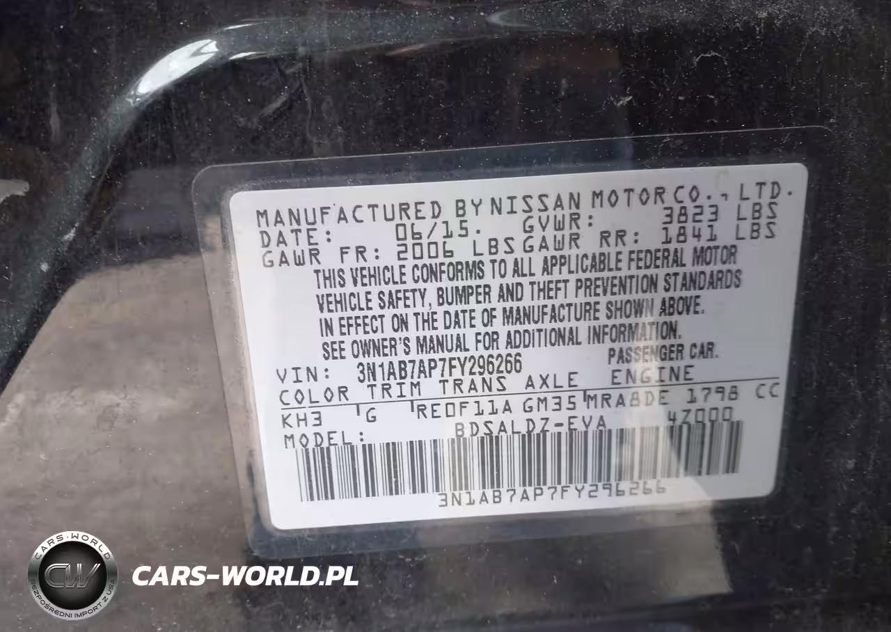IAAI Nr: I-44745968 VIN: 3N1AB7AP7FY296266 Port: Elizabeth, NJ