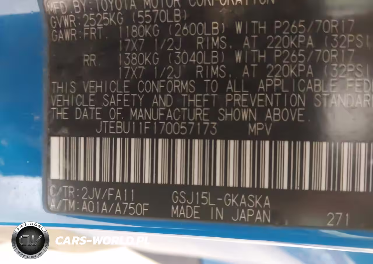 IAAI Nr: I-44746059 VIN: JTEBU11F170057173 Port: Indianapolis, IN