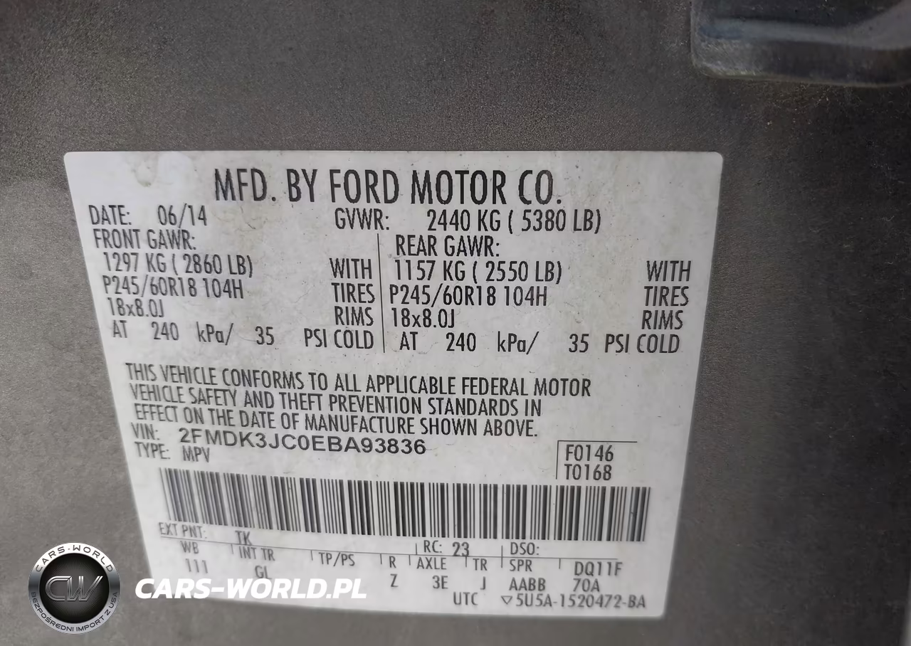 IAAI Nr: I-44746156 VIN: 2FMDK3JC0EBA93836 Port: Savannah, GA