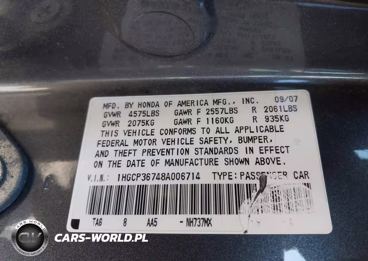 IAAI Nr: I-44746218 VIN: 1HGCP36748A006714 Port: Elizabeth, NJ