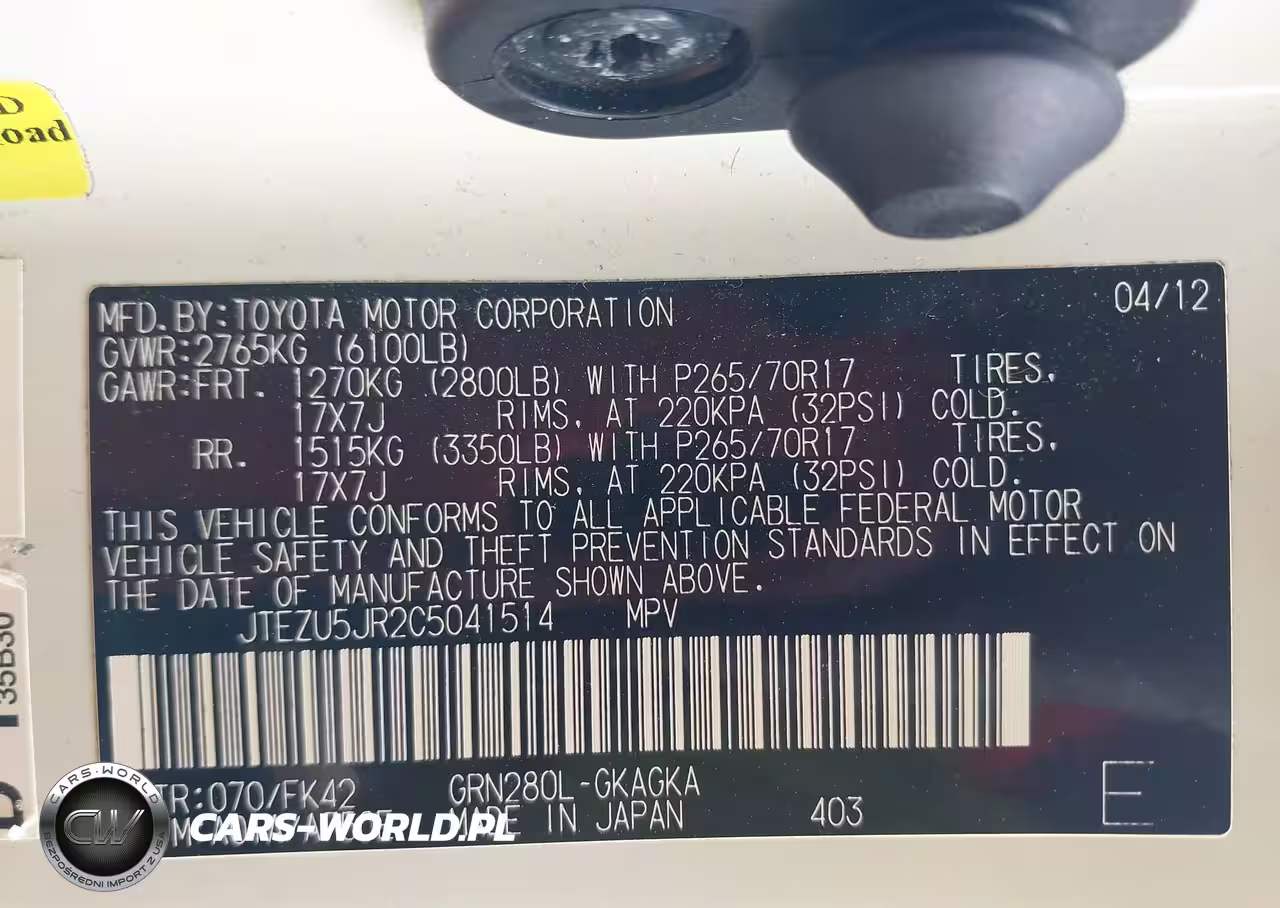 IAAI Nr: I-44746232 VIN: JTEZU5JR2C5041514 Port: Savannah, GA