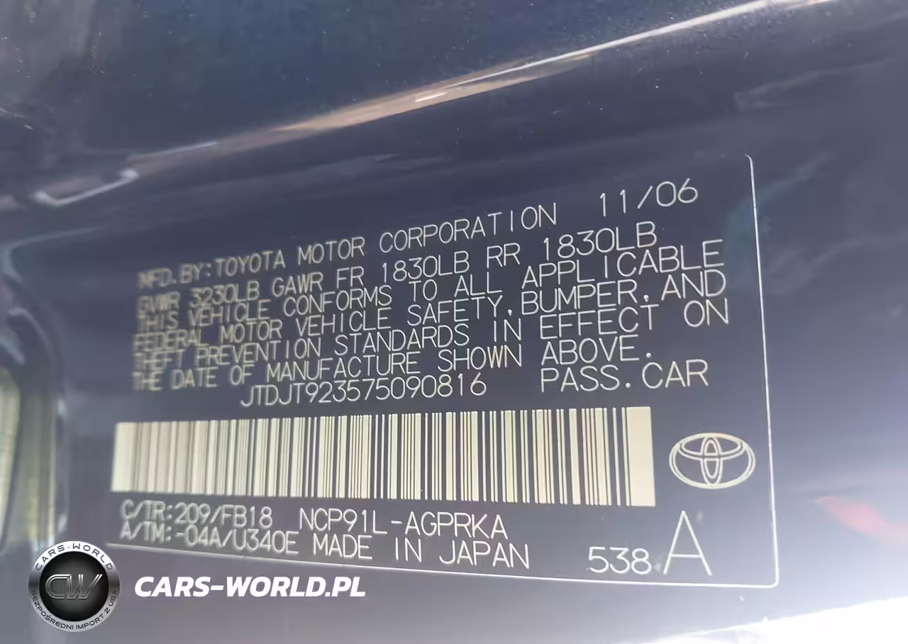 IAAI Nr: I-44746409 VIN: JTDJT923575090816 Port: Elizabeth, NJ