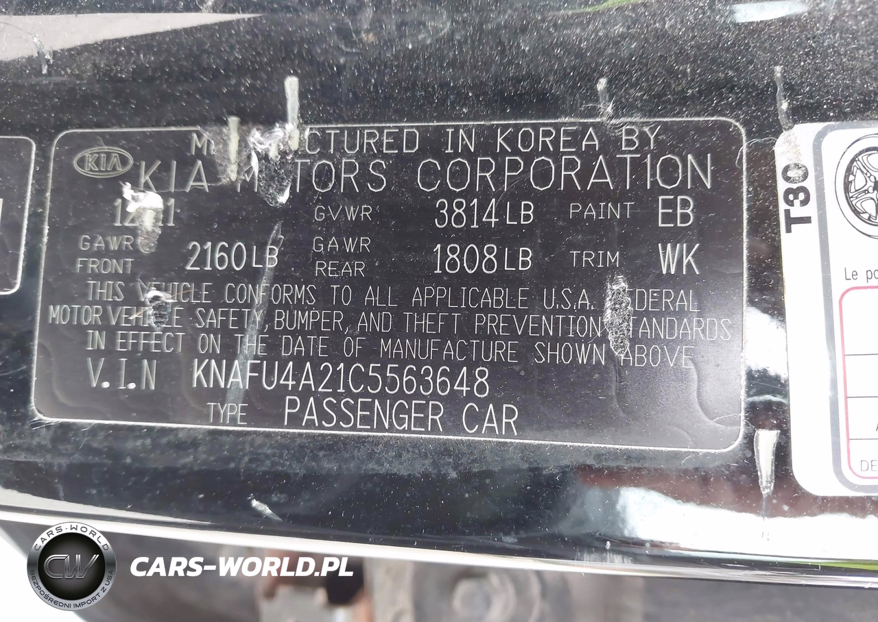 IAAI Nr: I-44747296 VIN: KNAFU4A21C5563648 Port: Indianapolis, IN