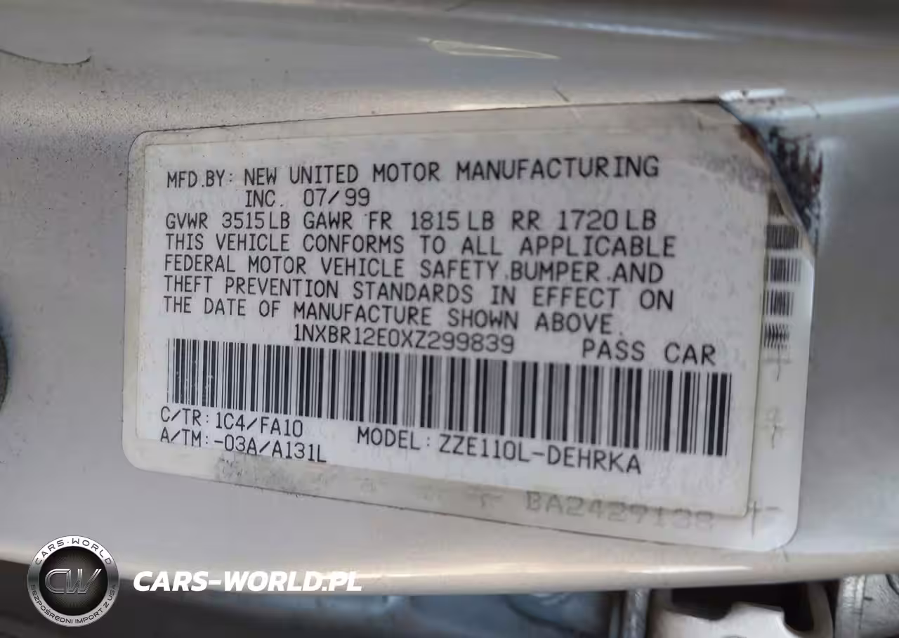 IAAI Nr: I-44747784 VIN: 1NXBR12E0XZ299839 Port: Savannah, GA
