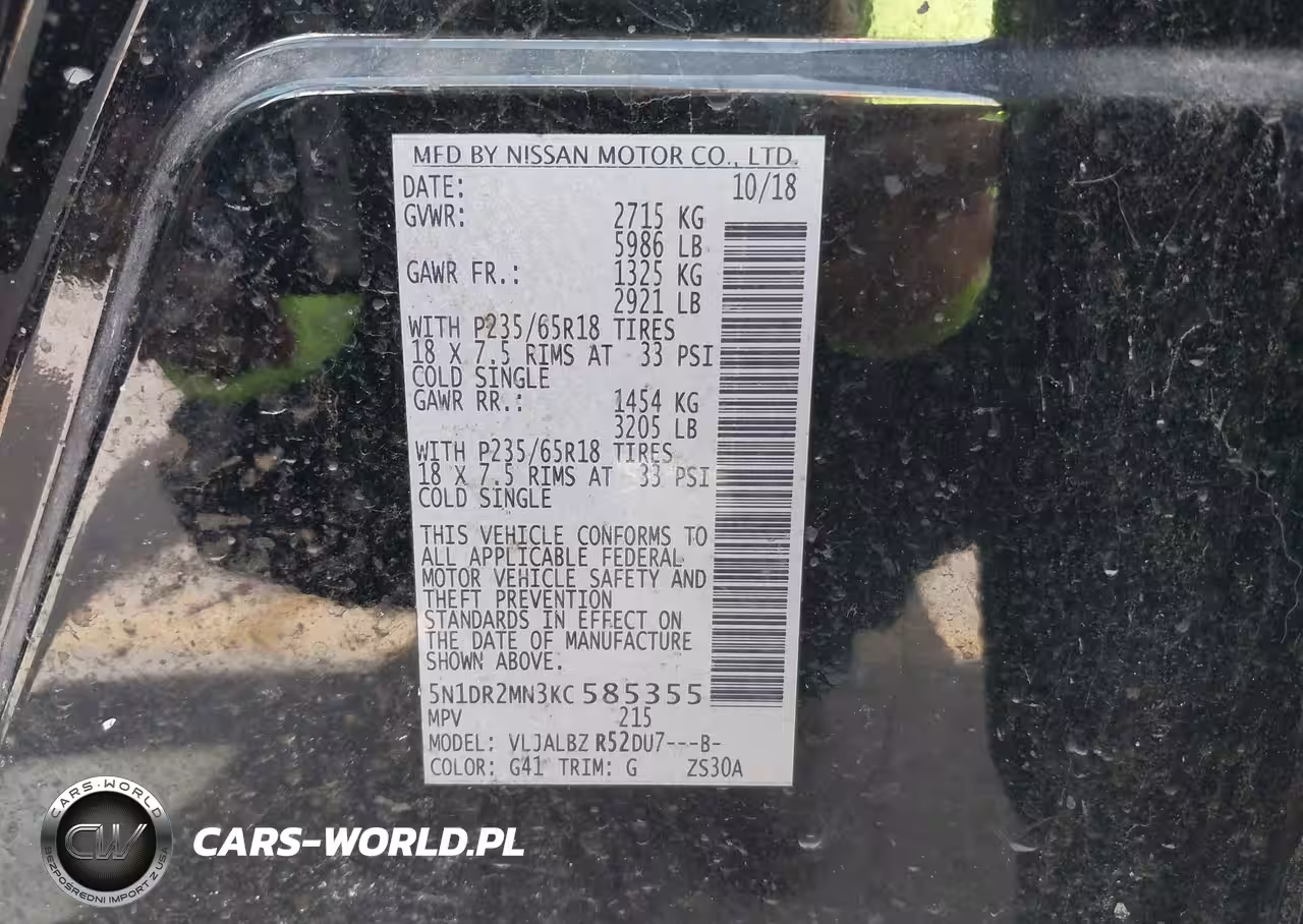 IAAI Nr: I-44748152 VIN: 5N1DR2MN3KC585355 Port: Houston, TX