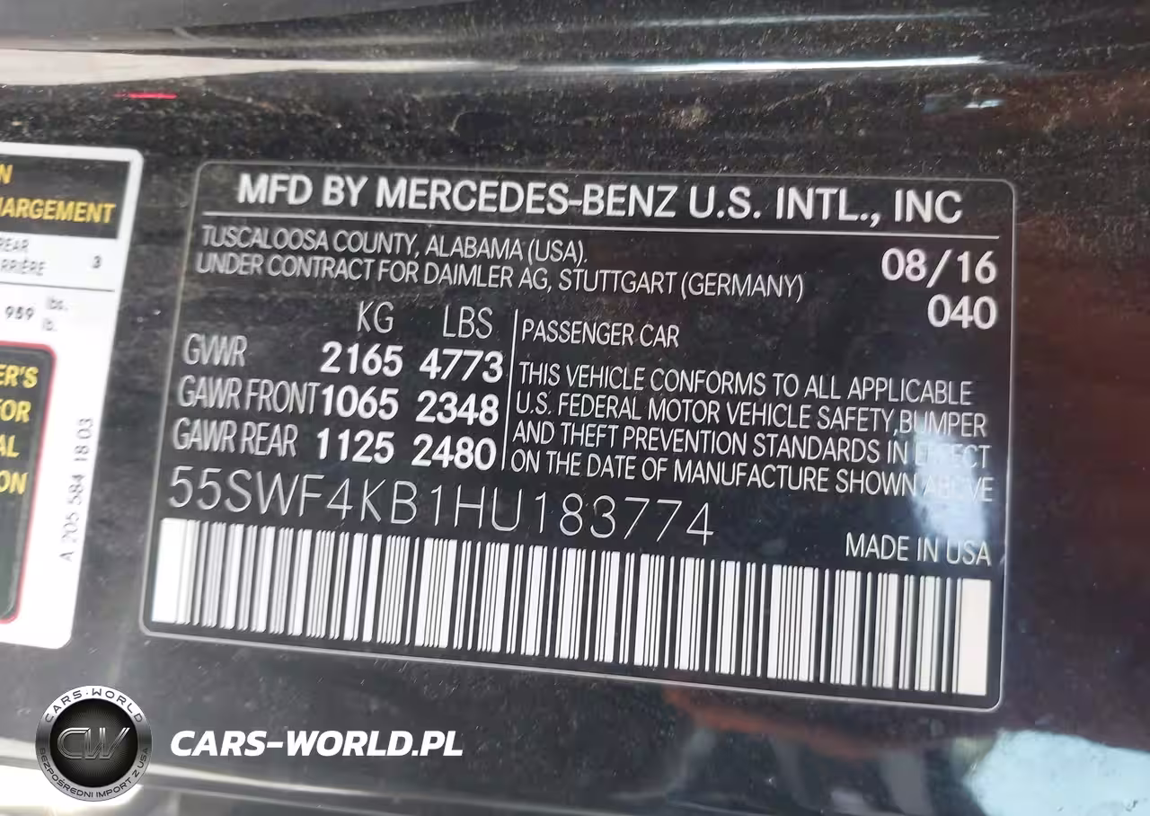 IAAI Nr: I-44748818 VIN: 55SWF4KB1HU183774 Port: Elizabeth, NJ