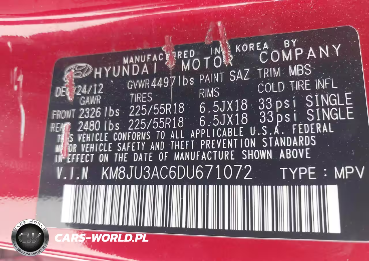 IAAI Nr: I-44748851 VIN: KM8JU3AC6DU671072 Port: Los Angeles, CA