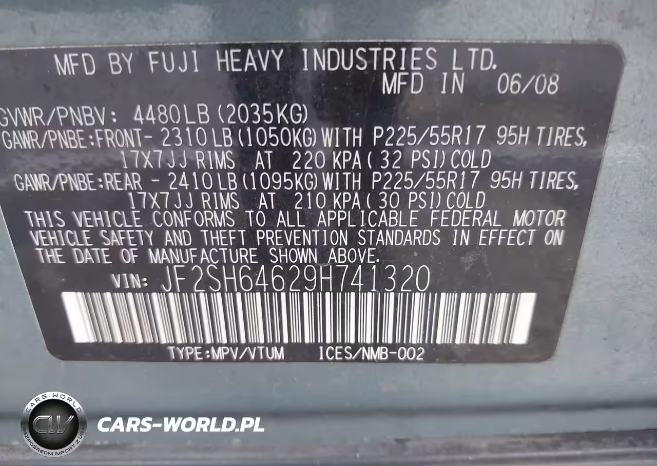 IAAI Nr: I-44750017 VIN: JF2SH64629H741320 Port: Los Angeles, CA
