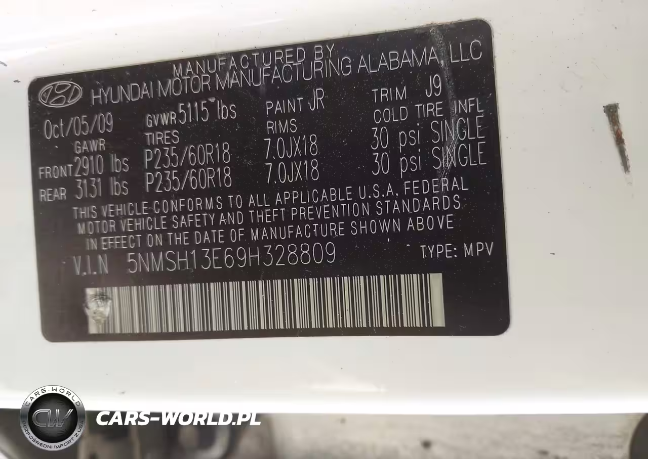 IAAI Nr: I-44750924 VIN: 5NMSH13E69H328809 Port: Indianapolis, IN