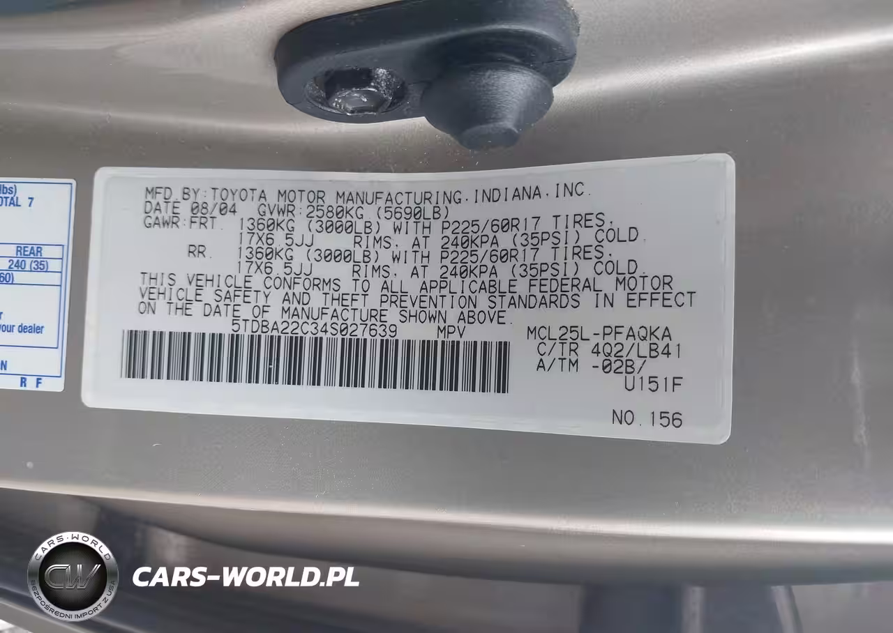 IAAI Nr: I-44751868 VIN: 5TDBA22C34S027639 Port: Indianapolis, IN