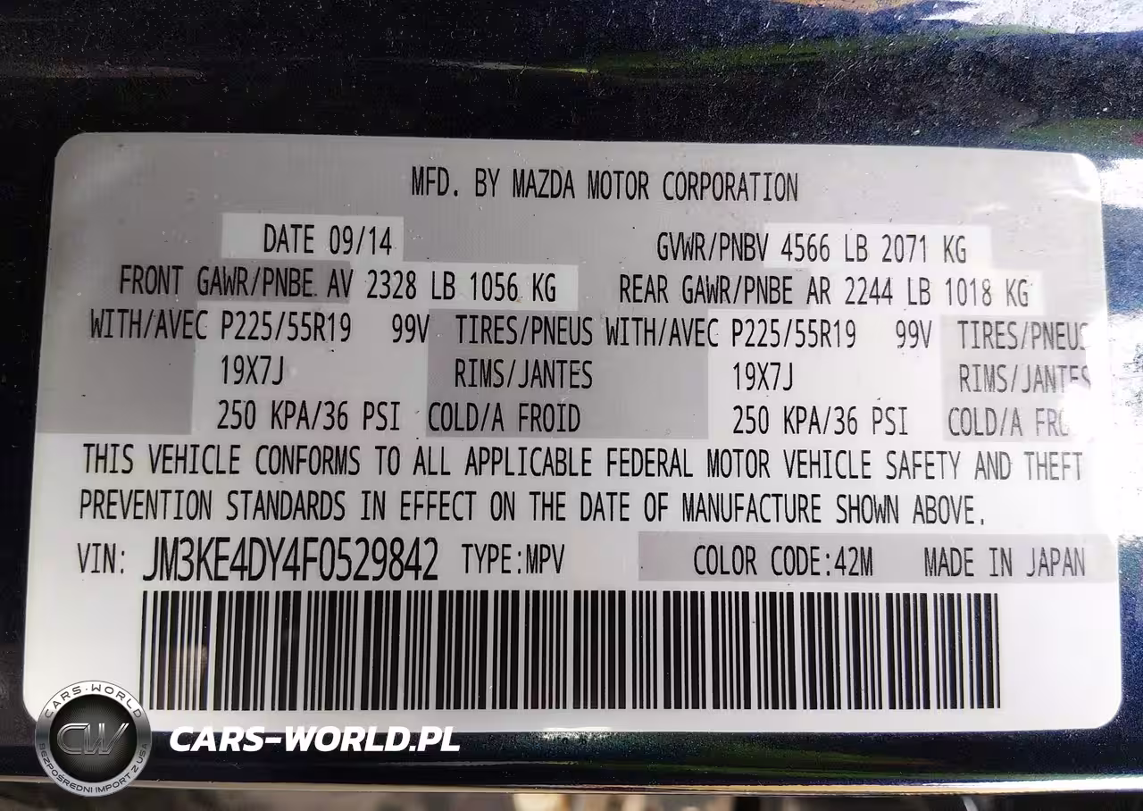 IAAI Nr: I-44752165 VIN: JM3KE4DY4F0529842 Port: Indianapolis, IN