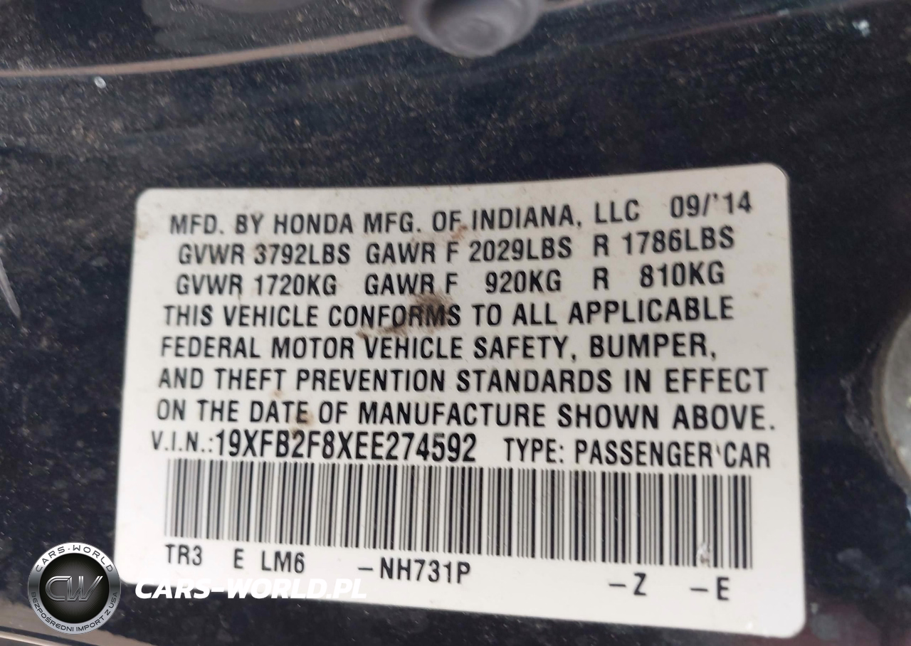 IAAI Nr: I-44752166 VIN: 19XFB2F8XEE274592 Port: Los Angeles, CA