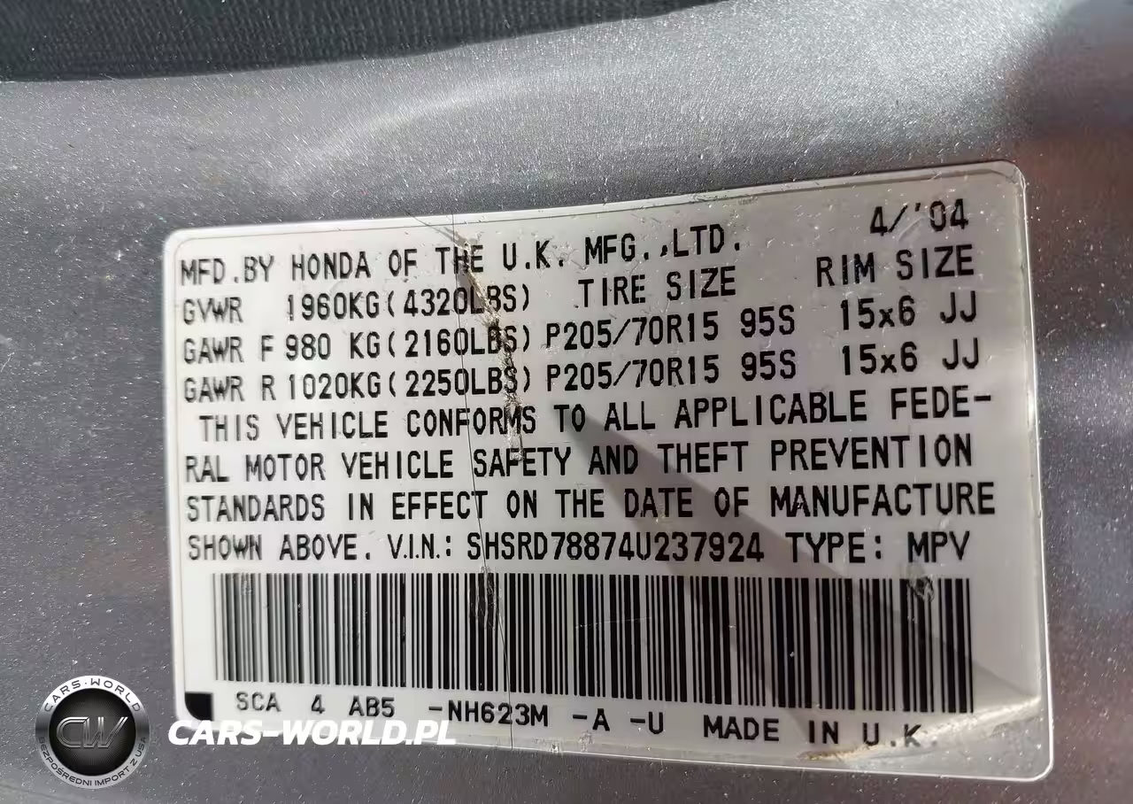 IAAI Nr: I-44752289 VIN: SHSRD78874U237924 Port: Elizabeth, NJ