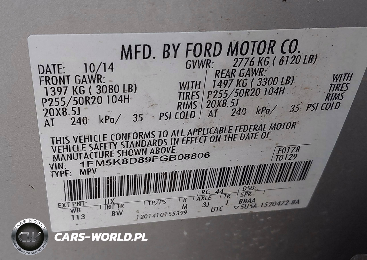 IAAI Nr: I-44752367 VIN: 1FM5K8D89FGB08806 Port: Indianapolis, IN