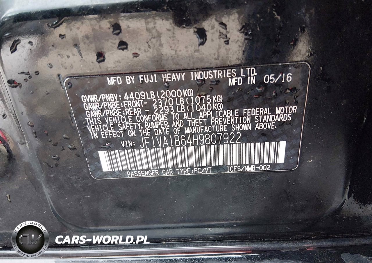 IAAI Nr: I-44752453 VIN: JF1VA1B64H9807922 Port: Indianapolis, IN