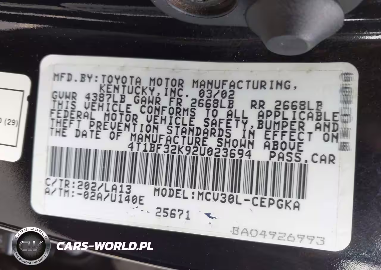 IAAI Nr: I-44752772 VIN: 4T1BF32K92U023694 Port: Savannah, GA