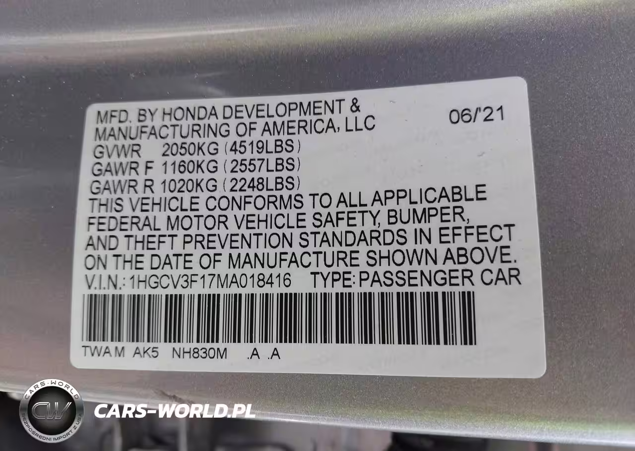 IAAI Nr: I-44753643 VIN: 1HGCV3F17MA018416 Port: Indianapolis, IN