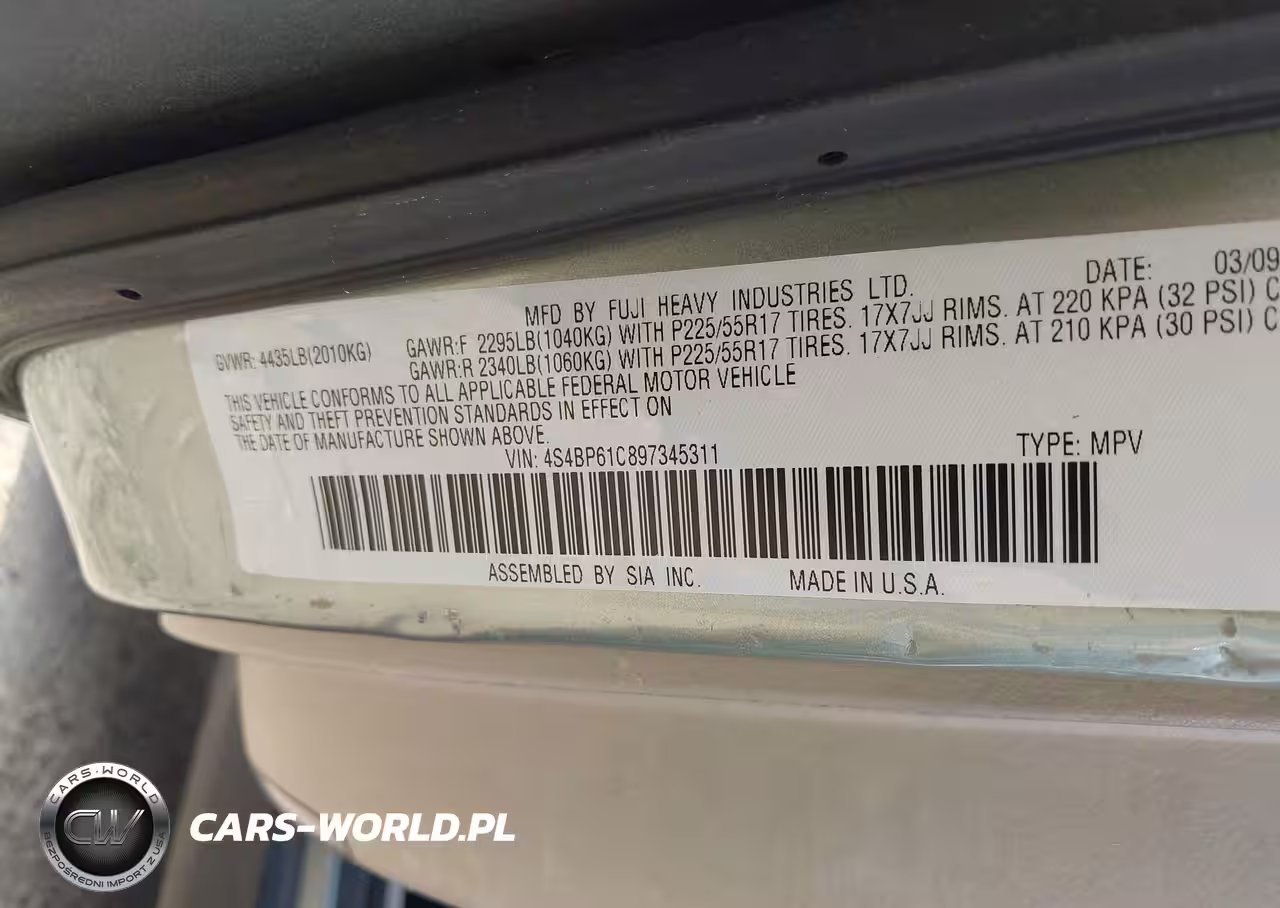 IAAI Nr: I-44753749 VIN: 4S4BP61C897345311 Port: Elizabeth, NJ