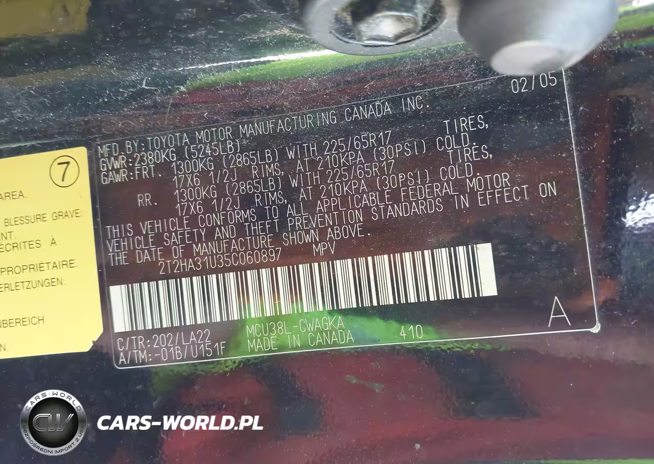 IAAI Nr: I-44753807 VIN: 2T2HA31U35C060897 Port: Houston, TX