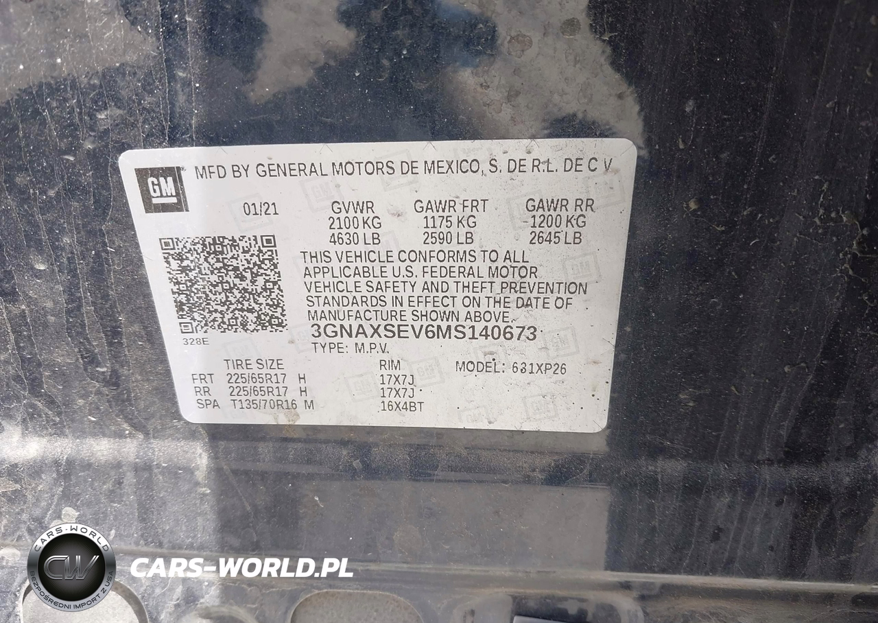 IAAI Nr: I-44754076 VIN: 3GNAXSEV6MS140673 Port: Elizabeth, NJ