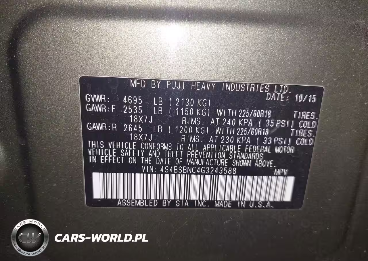 IAAI Nr: I-44754391 VIN: 4S4BSBNC4G3243588 Port: Los Angeles, CA