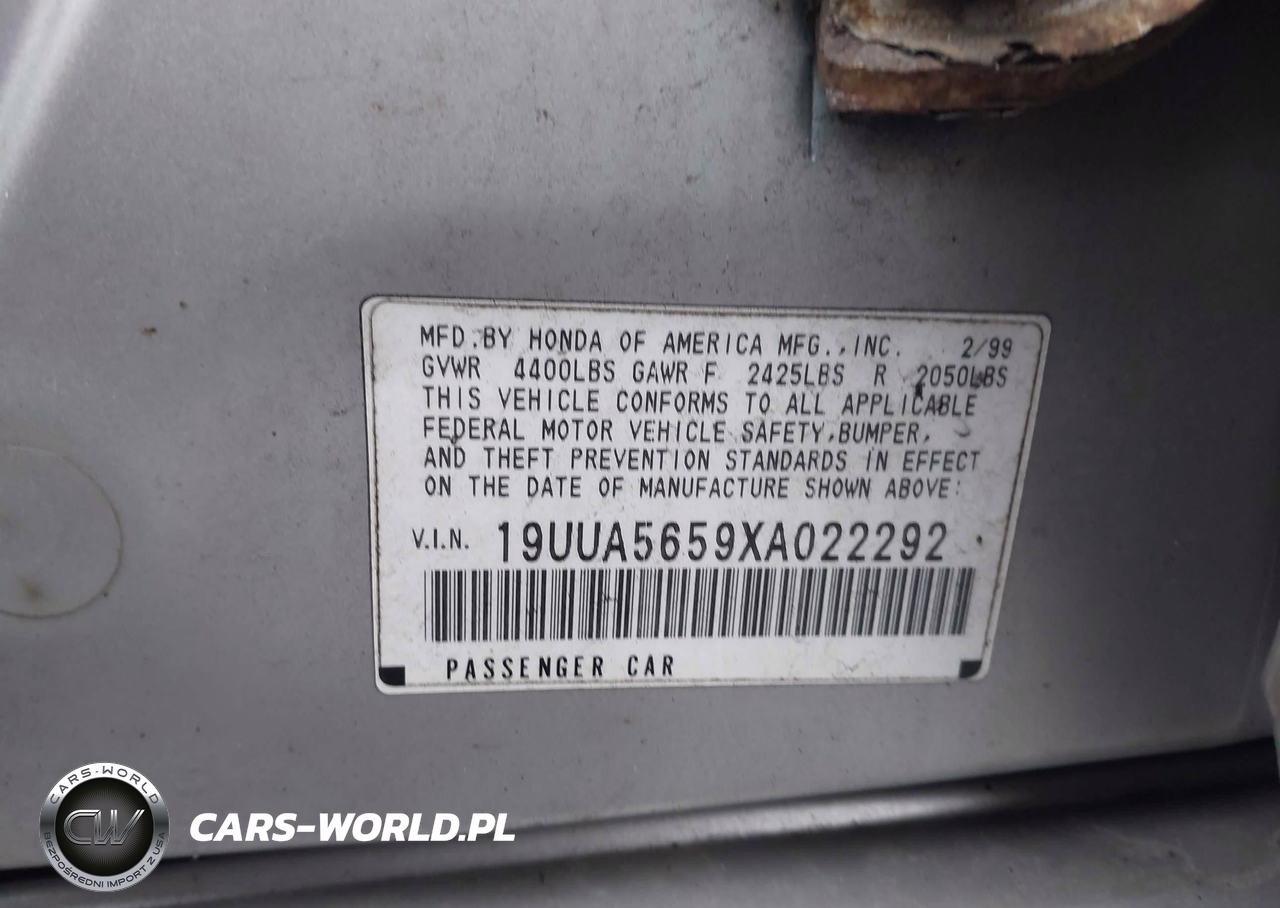 IAAI Nr: I-44755277 VIN: 19UUA5659XA022292 Port: Elizabeth, NJ