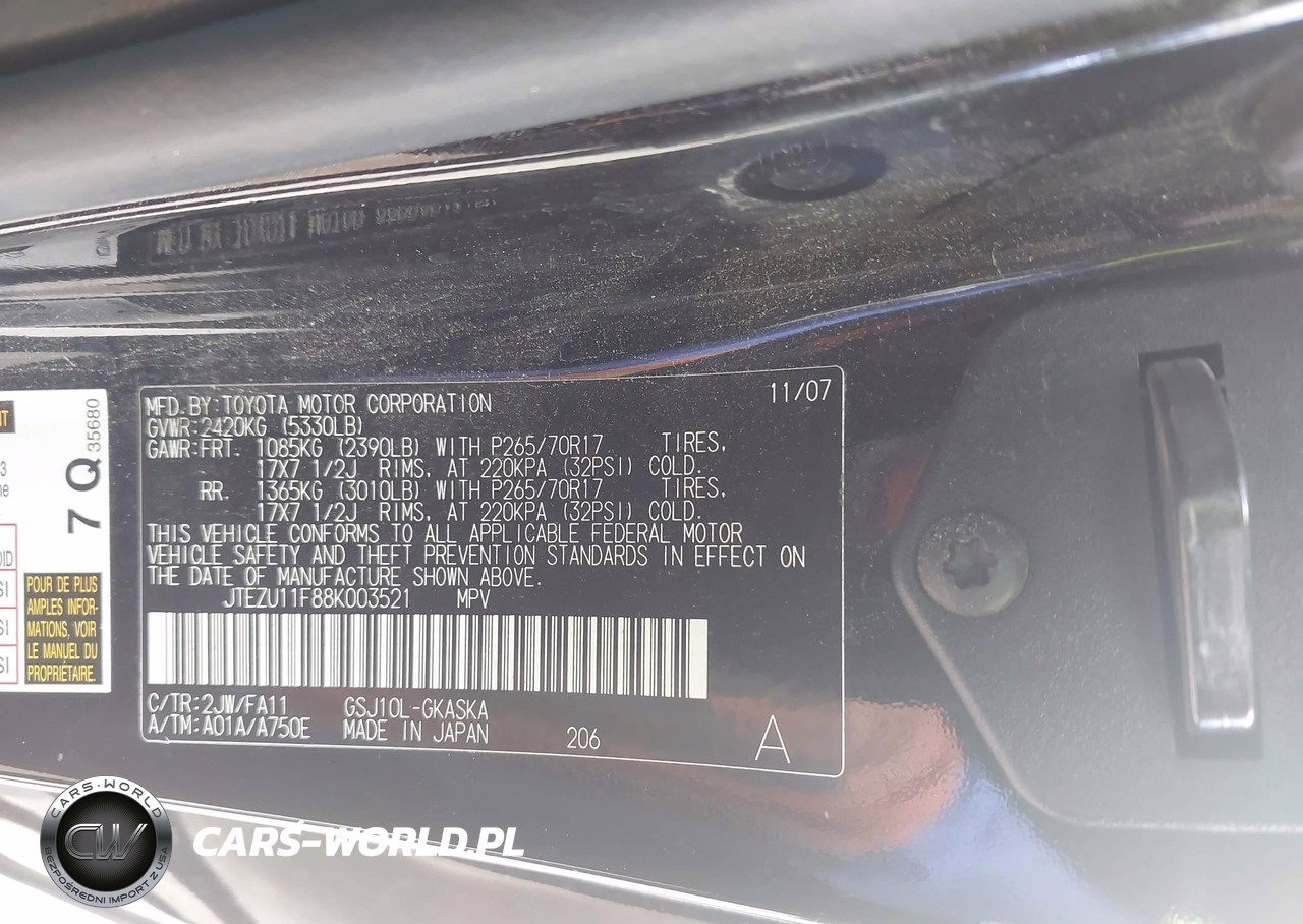IAAI Nr: I-44756316 VIN: JTEZU11F88K003521 Port: Houston, TX