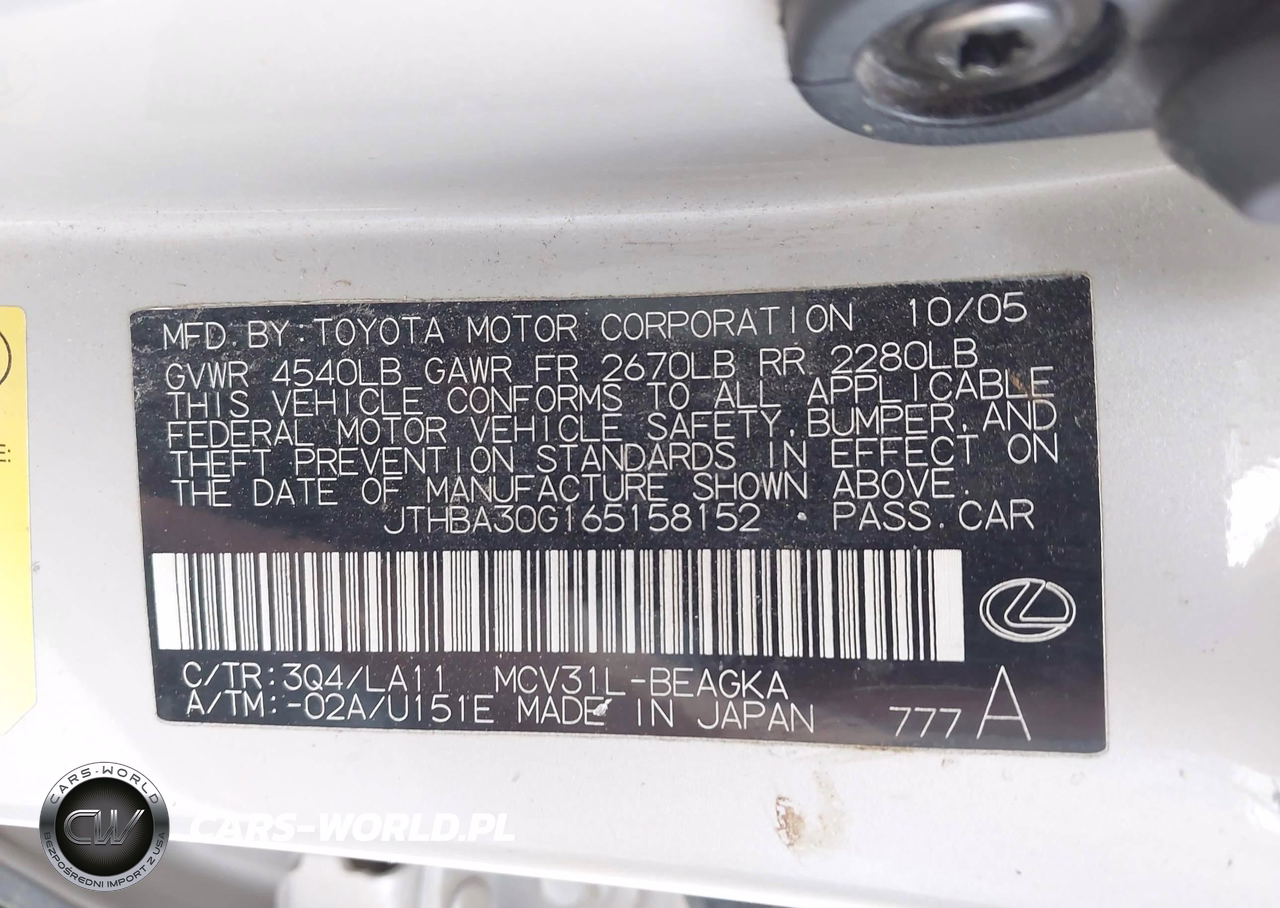 IAAI Nr: I-44756773 VIN: JTHBA30G165158152 Port: Houston, TX