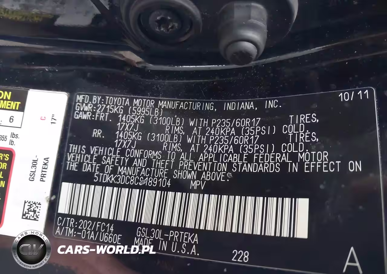 IAAI Nr: I-44757112 VIN: 5TDKK3DC8CS189104 Port: Elizabeth, NJ